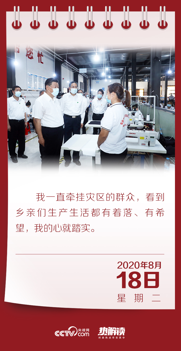 这次安徽考察调研,看到阜阳市阜南县蒙洼蓄洪区利民村西田坡庄台受灾群众生产生活没有受到重大影响,都在忙着抢种补种,习近平总书记欣慰地说:“我一直牵挂灾区的群众,看到乡亲们生产生活都有着落、有希望,我的心就踏实。”
