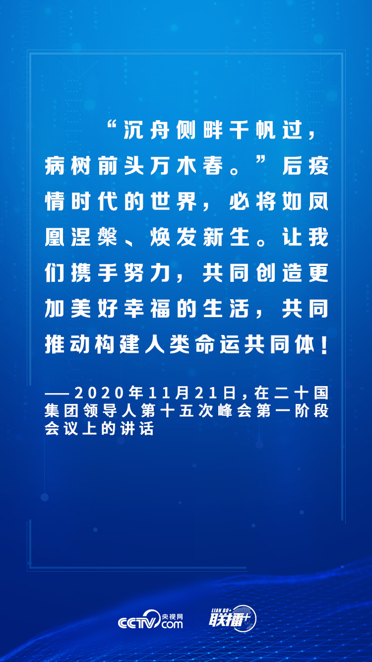 2020年11月,上海合作组织成员国元首理事会第二十次会议、金砖国家领导人第十二次会晤、亚太经合组织第二十七次领导人非正式会议、二十国集团领导人第十五次峰会等多场多边峰会接连举行。在这个繁忙的国际外交“峰会月”,习近平主席同各国领导人相聚“云端”,为完善后疫情时代全球治理擘画未来蓝图,奏响了构建人类命运共同体的时代强音。