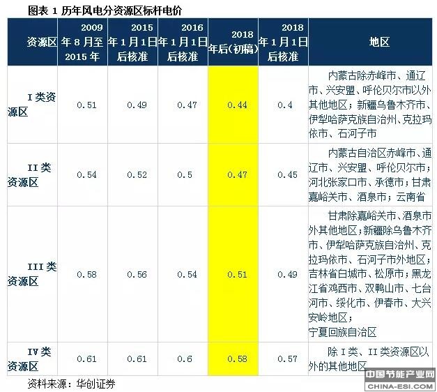 (一)风电价格最大幅度下调,一类资源区与煤电上网电价接近