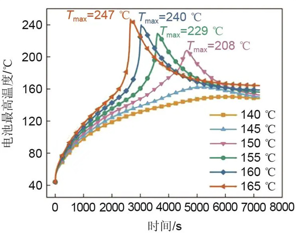 电池的热滥用即电池在高温条件下使用,高温热源有环境热和接触热两种。电池受到高温影响时,SEI膜分解并放热,隔膜融化引发电池的内短路,电池温度升高引发正负极与电解质的反应并触发热失控,随后电解质发生分解反应,使电池温度迅速升高。