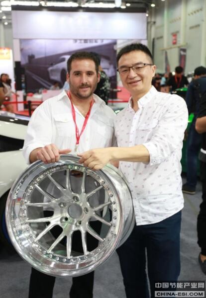 周海川和美国ADV.1总裁合影 手上这只轮毂是速度与激情主演保罗生前未交付的F430锻造轮毂