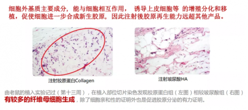 3)胶原蛋白刚好与玻尿酸(吸水性)相反,属于缩水性,所以注射胶原蛋白不易水肿,效果立现,且更自然;