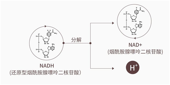 这倒不是说现代生物技术无力回天,而是在这期间,市场曾一度充斥着价格高昂的抗衰药物,但业界本就有抗衰系富人专属的共识,再加上NADH提取技术受限,产业界往往就小众市场掘金,日子不算难过。人类基于细胞靶向抗衰的研究因此长期停留于上一代技术的“蜜月期”。从早期因治疗糖尿病衍生出的二甲双胍疗法,到后来基于Senolytic形式的mTOR、NAD+疗法,虽然介入细胞抗衰的探索已经开始,但以此前NMN类产品为例,最早NMN的人均服用成本高达每年150万人民币以上。因此,绝大多数人回归基础方式,或许你以为只能通过运动健身、均衡膳食等进行健康管理,但其实要想精益化进行抗衰长寿规划,关键还要从细胞做起。NMN是在NADH之前流行于业界的靶向抗衰产品,中文名称是β-烟酰胺单核苷酸,通过进入人体内部,在酶NMNAT的帮助下,同时消耗一定的能量(ATP),最终转化为抗衰因子NAD+,发挥延缓衰老的作用。而NADH进入人体内部后,不需要在酶的催化作用下,就可以直接分解生成NAD+和氢(H),据UCSF(9个诺贝尔获得者名校)科学家研究证实,NADH可以显著提升NAD+水平,比NMN效率更高。且NADH分解过程中不仅释放能量为细胞“充电”,还生成“特种生物氢”能够起抗氧化的作用。NAD+、特种生物氢、能量三者协同作用,相比之下,NADH的抗衰性能比NMN更胜一筹。