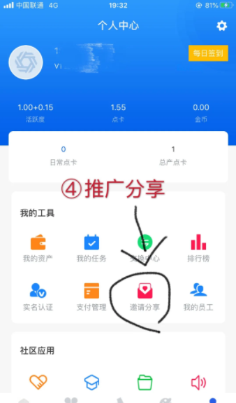 4、众赢兼职推广分享,跟其它同类项目都是一样的规则,分享越多每日点卡加成越高,星级越高,收入越高。
