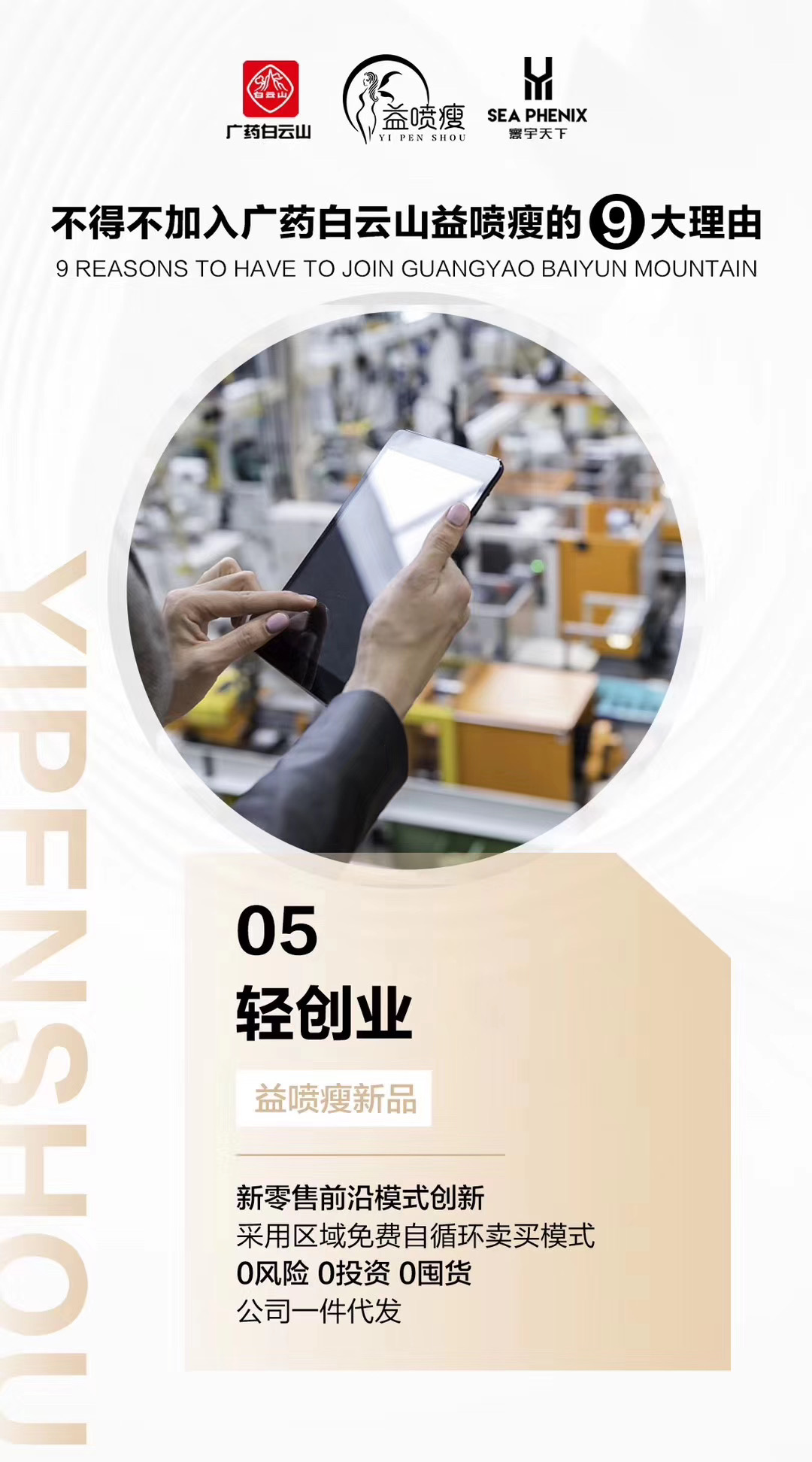 广州白云山医药科技发展有限公司依托白云山股份有限公司为强大的后盾,是知名大品牌、大企业,实力雄厚,前景广阔。在5G时代,轻投资创业才是王道,零房租、零水电,让创业没有负担!零成本、零风险,让创业没有障碍!快回报、高收益,让创业只有赢面,只要一部手机,不受时间、空间限制,就可以创造最新的事业,融入了现有生意。不要再等待,加入益喷瘦,让你在2020年轻松实现弯道超车。