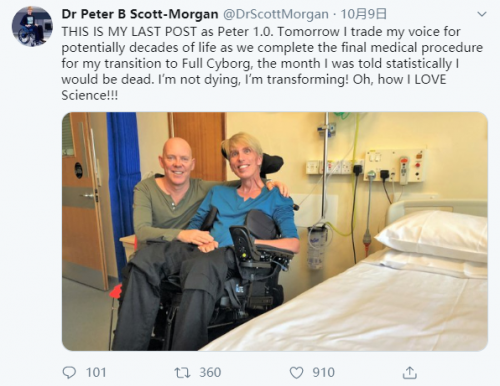 去年10月初,英国61岁科学家彼得·斯科特-摩根(Peter Scott-Morgan)接受了喉咙切除手术,这项手术结束之后,彼得就成为全球首例完全的“半肉体-半机器”赛博格人,并打破此前医生对他“活不过三年”的断言,成功续命。随着彼得续命的具体过程逐渐浮出水面,对逆转衰老、“长生不老”苦苦追求的富豪们精神再次为之振奋起来,人类和寿命“分庭抗礼”的时代终于要到来了吗?