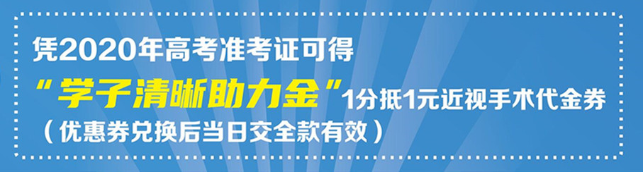 为助力应届高考生清晰追梦,青岛华厦眼科医院提供近视手术优惠政策,凭2020年高考成绩1分抵1元进行近视手术减免!