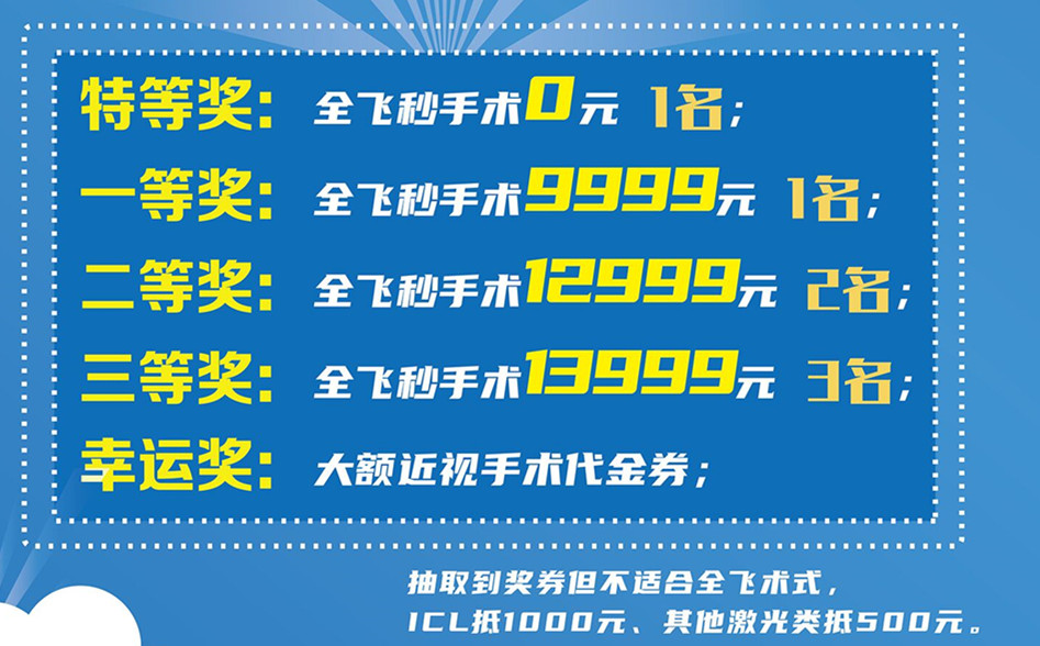 当日活动到场参与者都有机会抽取0元全飞秒近视手术名额!