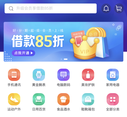 在消费场景上,好分期开启了全场景模式,构建了线上一体化的分期购物商城。为保证用户获得良好的线上消费购物体验,好分期早在建立之初就对用户的消费习惯做了大力度调研,使线上端口的视觉设计与行为设计更符合年轻人的消费习惯,大大提高了用户的购物体验与效率。