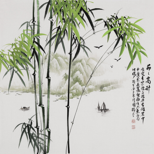 竹子山水画 李国胜小品斗方山水画《节节高升》 作品来源:易从网