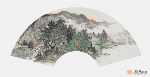 王宁山水画扇面系列作品三《春满人间》 作品来源:易从网
