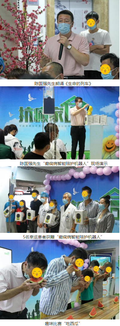 远离家乡的患者及家属与医务工作者代表共同参与抗癫家园公益活动,诗朗诵《生命列车》倍受震撼、感触颇多,大家都希望在日常生活中能够认真对待生命、珍爱生命,珍惜身边的一切和一路的相随。趣味比赛“吃西瓜”、免费赠送的“癫痫病智能陪护机器人”现场演示,更是将公益活动气氛推向高潮。