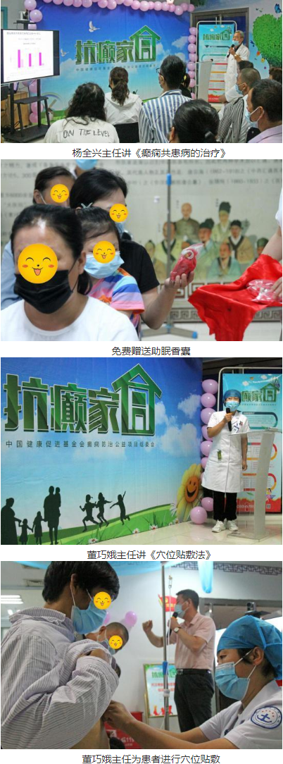 活动邀请到了中国抗癫痫协会会员杨全兴主任和国医大师石学敏院士学术传承人董巧娥主任,他们分别对《癫痫共患病的治疗》和《穴位贴敷法》进行了主题宣教,同时也针对癫痫患者在互动中的一些重点问题进行了专业的讲解,现场,董巧娥主任为患者进行穴位贴敷和处理办法,帮助患者勇敢面对癫痫,树立抗癫信心。会上还抽取并免费赠送了穴位贴敷和助眠香囊。
