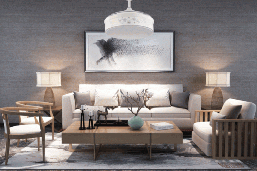 在不吹风的状态时,扇叶会自己收起来,还原了吊灯的模样,简洁大方。其简约的造型,自然的形态,透出几丝休闲的味道,搭配在客厅或者餐厅使用,美观又大方。