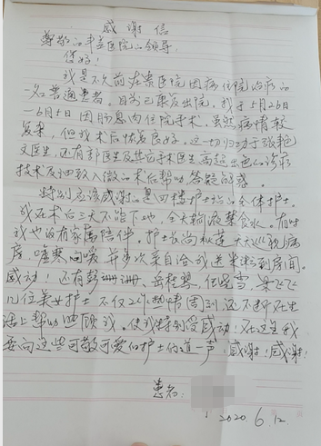 秉承着一颗“爱心、热心、细心、耐心、诚心和责任心”的服务精神,赢得的了患者的诚挚的感谢。一面面锦旗,一封封感谢信,表达着对我们护理工作的高度赞誉,虽然每天留下的是一身疲惫,换来的却是患者身心的安康。