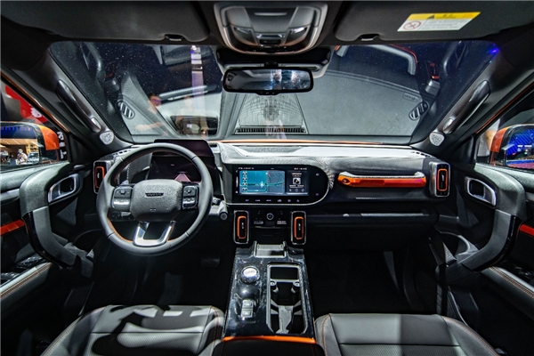 副驾驶前方带有深棕色木纹饰板,设计得很有层次感,也提升了车内的档次。宽大饱满的三幅式多功能方向盘握感舒适,配合旋钮电子换挡,相信没有人坐在车内不想马上启动驾驶一番。车内搭载的V3智能平台同样集大量先进功能于一身,能够给予驾乘人员丰富超前的人机互动与视听体验。