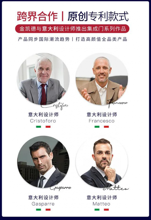 金凯德早早地捕捉到了门业供给市场对于消费能力、水平、需求、方式的升级发展方向,并第一时间集合行业优质资源做着合理且有效的反应。金凯德以产品为有力依托,邀请世界级著名设计师参与,坚持原创品牌研发,尤其是在木门系列产品线集中力量、大大发力。其以自然实木为核心竞争力的木门系列能够做到无限接近零甲醛,环保安全。“26道工序+六检两装+产品标识”的生产设计流程也为金凯德木门敲开了健康环保高端市场的大门。