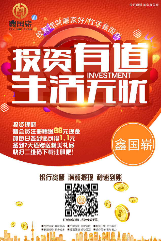 鑫国崭是一家具备优秀的自主研发能力的金融创新专业性投资机构,致力于为个人和企业搭建一个高效、直接的投资桥梁,构筑更轻松自由的投资环境,寻找个人与企业之间的安全与效率的平衡点,推动解决利率市场化进程中投资渠道窄和实体企业投资难的问题,全面实现双赢。是一款零基础即可通过手机操作的投资平台,真正的实现,当日投资,当日即可收益的投资的投资方式!
