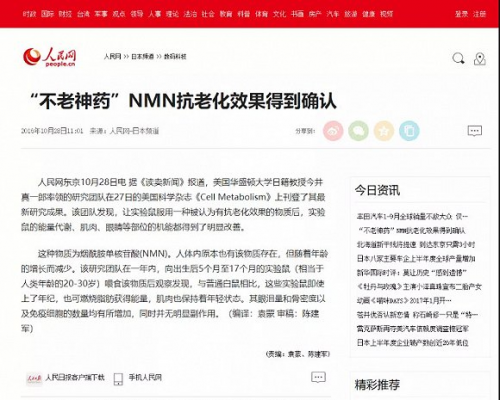 NMN又称为β-烟酰胺单核苷酸,是人体主要能量物质NAD+的前体。研究显示,随着年龄增长,人体内长寿蛋白的辅因子NAD+持续减少,导致细胞功能下降,从而引发衰老、新陈代谢失调等。此前,人民网也编译报道相关研究。