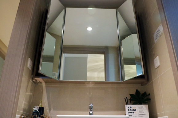 小空间,大用途。三折镜后设置独立储物空间,不管是私密物品亦或镜前梳妆用品,全部有处安放。洗漱台面减少摆放物品,干净清爽,让私密洗漱空间再增一重保障。