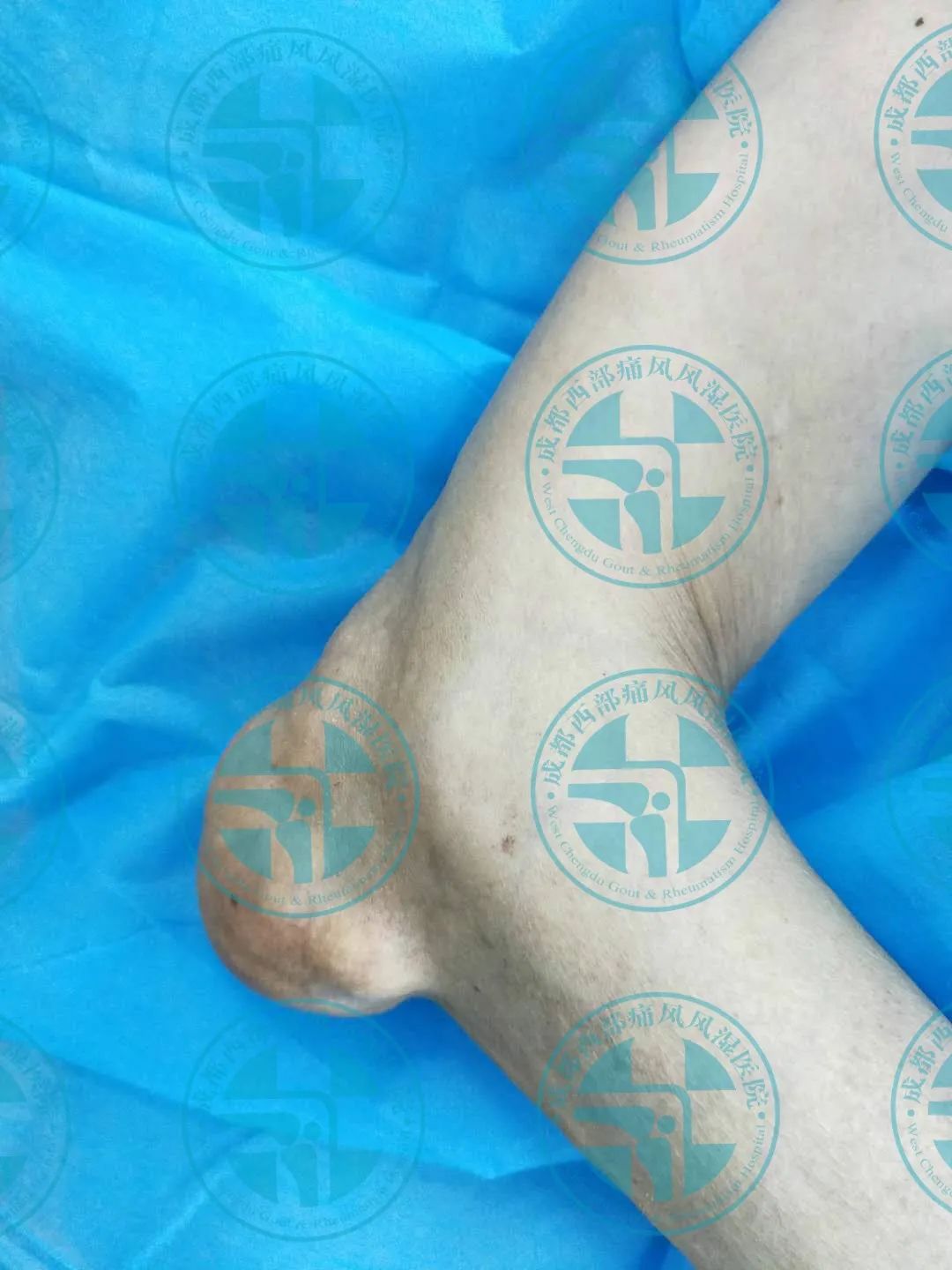 更不用说有些巨大痛风石的皮肤,已经被痛风石撑得很薄、失去了良好的再生能力,那就更不容易愈合了!最后痛风石对于正常组织比如说骨骼、关节软骨以及韧带等等都是具有腐蚀作用的。揉搓的时候会压迫痛风石加大痛风石对于正常组织的压力,导致正常组织更快地被腐蚀。所以痛风石是绝对不能揉搓的!!!