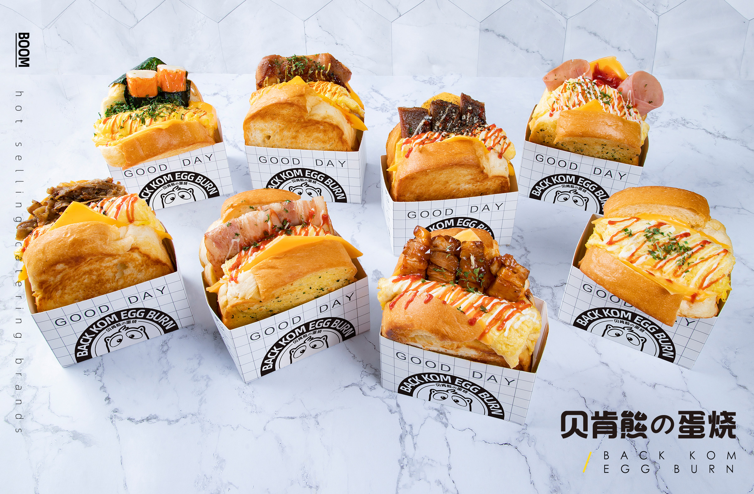 每一款都标配了吐司+比豆腐还嫩的无菌欧姆蛋,还有各种口味的配菜,用料饱满就要溢出来啦!简直就是一份元气满满的炸弹,无论是清早的早晨还是午间的工作餐,亦或是空闲之余的零嘴,只要咬上一口就会获得满满的幸福感!