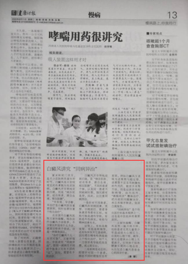 夏末秋初三伏天,是不少皮肤病易滋生的时节。白癜风是目前较常见的色素脱失性皮肤病。白癜风并非单纯皮肤白斑,而是“病在肌肤、症在体表、源自血液、根在脏腑”。