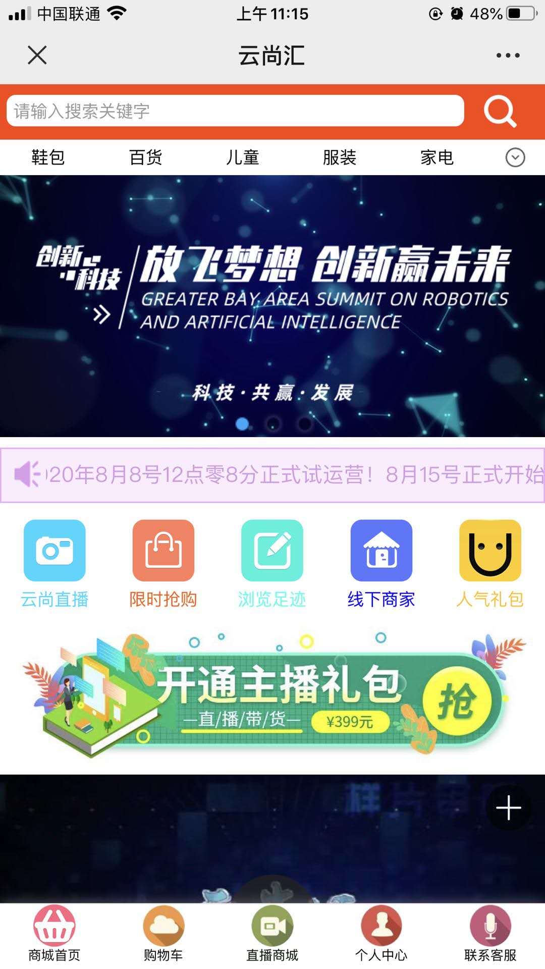 “云尚汇平台”,是由广州云店集网络科技有限公司做技术支持,商城与直播软件及应用系统程序自主研发,全网覆盖,功能齐全,操作简单!通过平台与用户的亲密合作,相信在不远的将来,“云尚汇平台”,能真正成为一个全球化的消费共享平台。