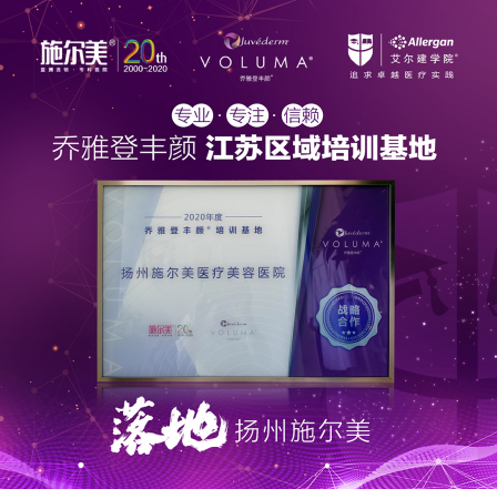 2020年8月13日,扬州施尔美,再添新华章。作为当今全球医美行业领导者之一,艾尔建乔雅登丰颜江苏区域培训基地成立仪式暨注射医生培训会,于扬州施尔美隆重召开。扬州施尔美院长潘家明、艾尔建高级地区经理邱筱婷、专家郑罡等出席并致辞,集体见证这一盛事。