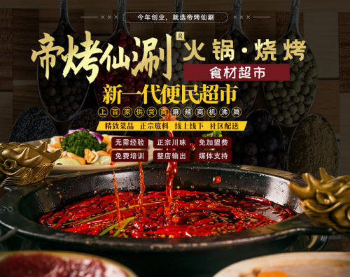 帝烤仙涮火锅烧烤食材超市涵盖了冻品、生鲜、小吃、底料蘸酱、四季饮品、火锅器具、烧烤器具等多品类,并逐步向一站式火锅烧烤食材超市连锁系统迈进。以互联网销售平台+实体店面+超市配送模式,打造一条中国家庭厨房的食材供应链,致力于为8.5亿县乡老百姓的食材消费升级服务!为越来越多的“宅、急、忙、懒、老”人群提供家庭生活便利。作为国内的知名品牌之一,目前已经在广东、湖南、湖北、江西等各个地区成功打造了多家门店。