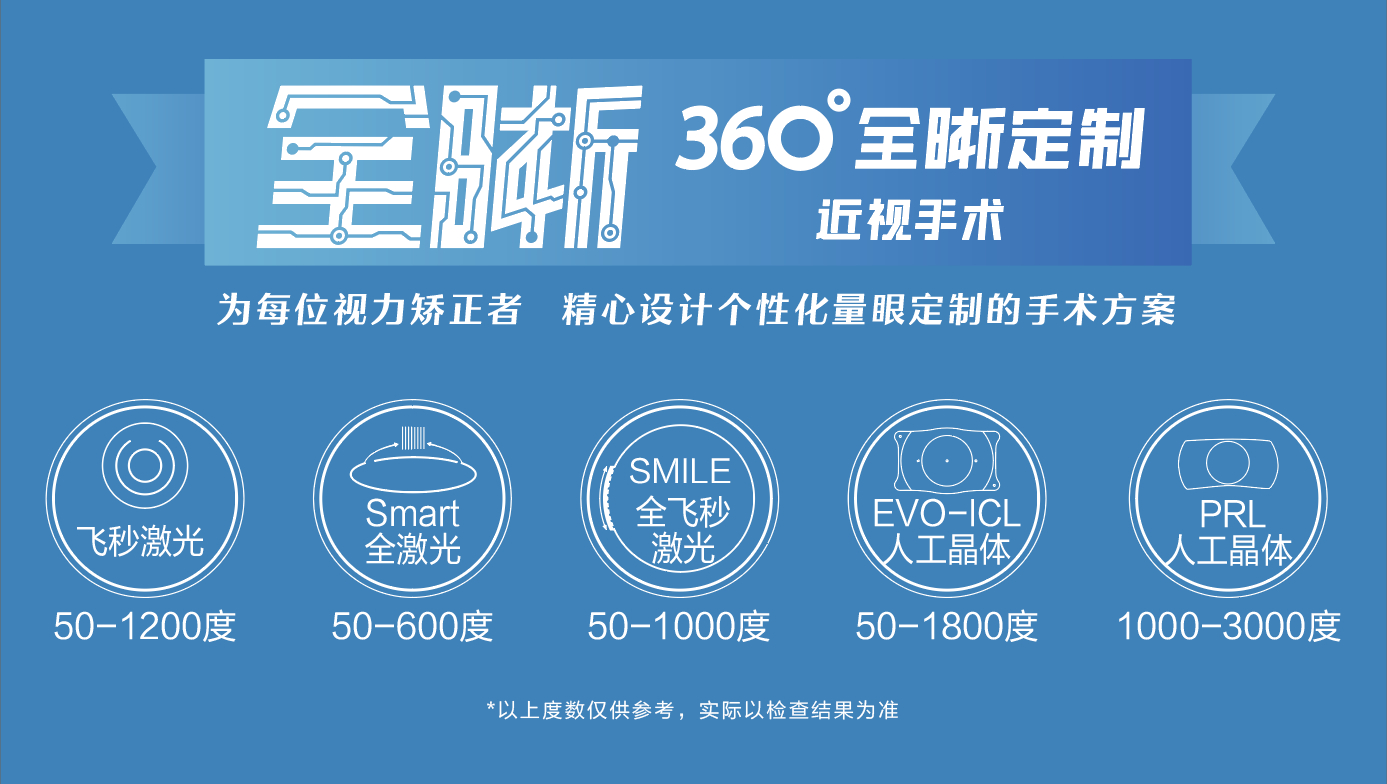 近视手术发展至今已有30余年,手术技术已经非常成熟,手术安全性也已得到公认,目前主流的近视手术方式分为“全飞秒”、“半飞秒”、“SMART全激光”以及“ICL人工晶体植入术”,医生会针对患者自身的眼部情况来进行定制。