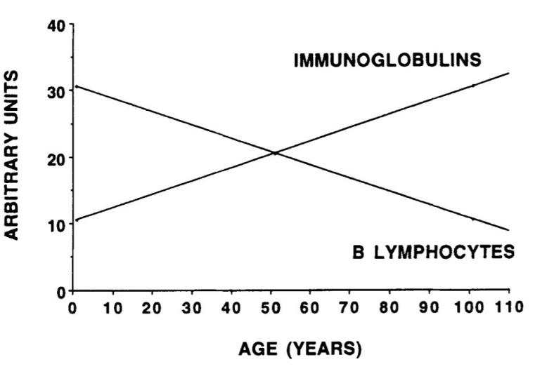 随着年龄的增长,老年人的免疫力明显下降。面对相同的病原体,发挥作用的B细胞数仅及年轻时的1/10~1/50 。