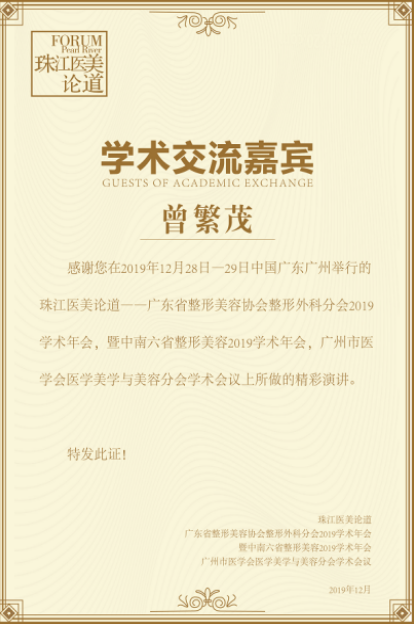 1、广东省整形美容协会整形外科分会2019学术年会学术交流嘉宾