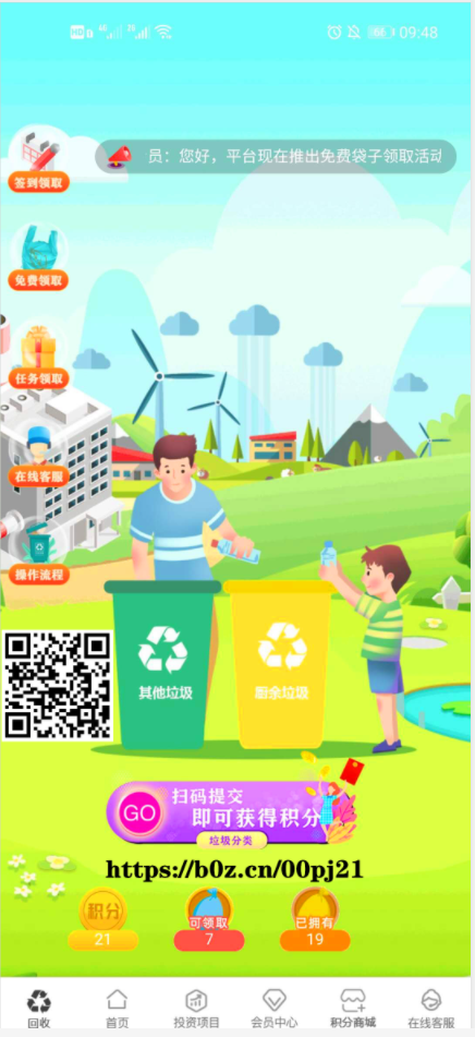 1、在生态宝软件中可以通过回收垃圾,签到的方式;