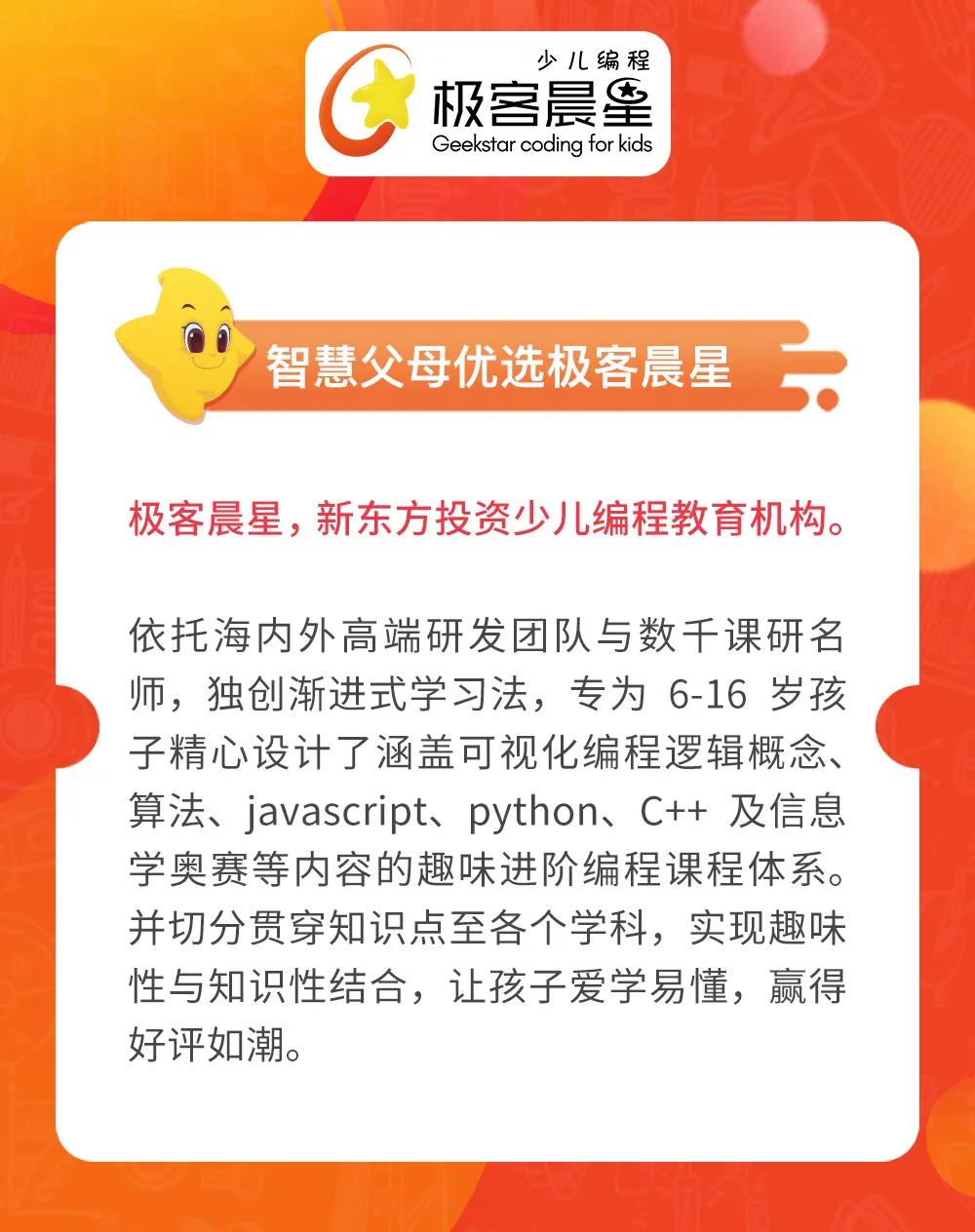 对此考试,极客晨星根据考纲,特意对内部资深名师进行了系统专业培训,包括考试范围、考试题型以及考误培训等,旨在帮助孩子一次通过考级考试。