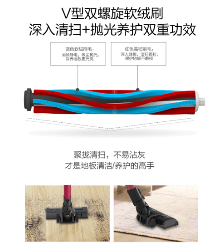 斐纳TOMEFON TF-X60吸尘器不仅配有多种刷头,还可以对家里的地板缝隙进行深入除尘。该产品配置了V型双螺旋软绒刷,能将地面甚至缝隙中的灰尘高效聚拢然后再进行清扫,这样不但不容易沾上灰尘,还能对地面起到养护的作用。