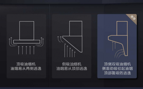 而侧吸式抽油烟机会将风口设计下移、偏向于油烟发生的根源区域,能快速吸除升腾油烟,但爆炒时产生的大油烟容易从两侧逃逸;