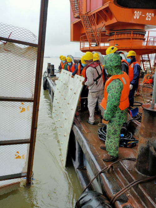 该项目主要是对桥梁墩柱进行加固。项目开始时间为2020年03月,该项目的技术难点是长江水流湍急,水上涨很快,工期仅为20天,全程水下施工。所涉及产品为水下玻纤套筒加固系统。