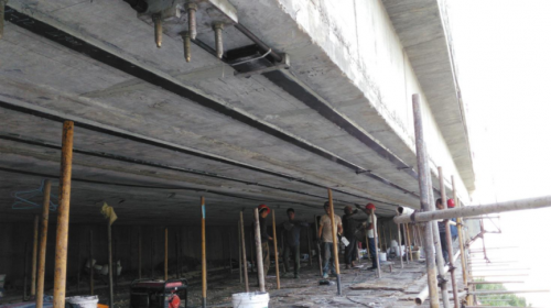 襄阳市鱼梁洲大桥改造工程,2015年 10 月份开始施工。鱼梁洲大桥于 1997 年 9 月建成通车,是鱼粱洲连接樊城的唯一通道,由于桥面太窄,只有双向2车道,每逢上下班高峰时段,桥面交通经常堵塞。此次鱼梁洲大桥改造,大桥主体结构不变,只对主梁及盖梁、部分墩柱及桩基进行加固,主要病害是有严重的空心裂缝,涉及产品为预应力碳纤维板加固系统。