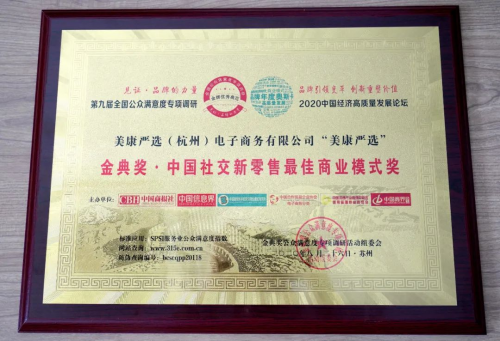 作为新零售行业的杰出品牌,美康严选当之无愧的荣膺“金典奖·中国社交新零售最佳商业模式奖”。