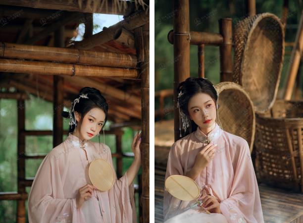 例如冷淡系中,西雅视觉新推出的《传闻中的陈芊芊》中女主角“陈芊芊”的造型。这种类型的汉服比较偏水墨风格,所以妆容也应以淡色为主,以营造出一种“犹抱琵琶半遮面”的感觉。