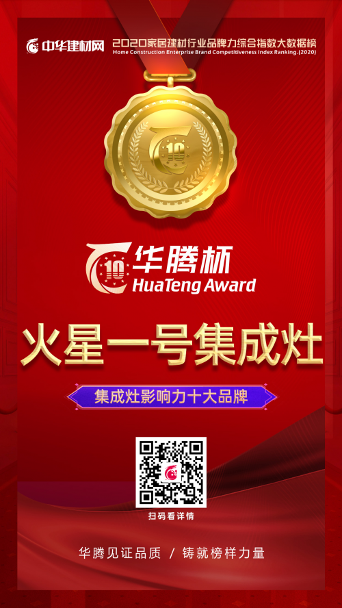 在品牌林立的集成灶行业,火星一号始终专注于集成灶的研发与生产。在此次由中华建材网主办的华腾杯2020集成灶十大品牌评选活动中,火星一号集成灶成功上榜“2020集成灶影响力十大品牌”。