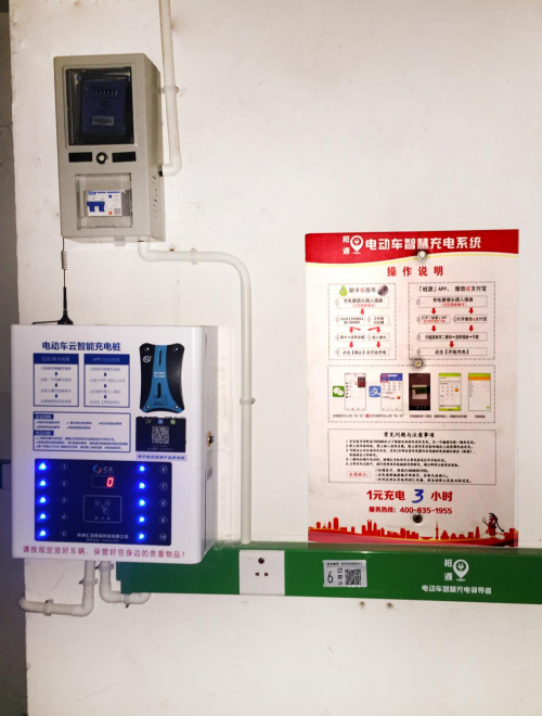 据了解亲亲家园在杭州余杭区良渚街道辖区内,是属于商品房,有业委会,有物业的类型,分四期,有80 多万平方,5400 多户住户,5000 多辆电瓶车。现已投建132 个站点,共计1585个桩源品牌云智能充电位。这些充电站点的设备及系统均由汇点新能源科技有限公司投资运维。投入运营的是桩源GL-CZD03B和GL-CZD02D触控型室内智慧充电主机,该款主机集合物联网、互联网、智联交互式和无线通讯组网技术,具有“三防一限八断电”安全机制,车辆充电时,系统每秒监测电流数据,并每分钟采集电流数据生成充电心电图,实时监测充电过程,杜绝安全隐患的发生。