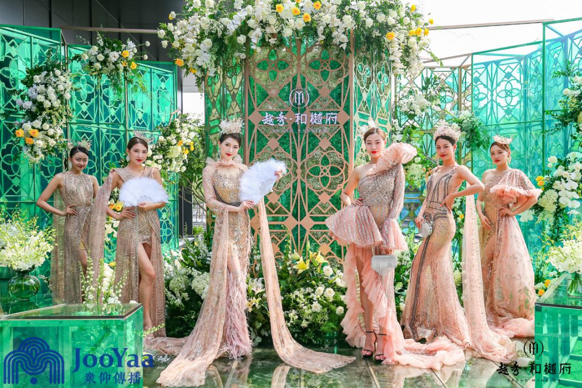 众仰人凭借自己的信条:“每一场活动都是现场直播”,不放过每一处细节。在入口处到营销中心的接待厅,一路上繁花盛开。黑色底面的水系衔接,巨型的绿色透光自然花艺装置,随处可见的流水,绿树,鲜花,这与越秀·和樾府的理念自然生长完美契合,也让宾客从踏入营销中心的一刻,便能感受到“自然流露的美”。