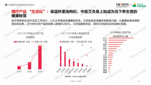 在2020年5月19日,第一财经商业数据中心(CBNData)联合阿里健康发布《天猫医药馆健康趋势白皮书》显示: