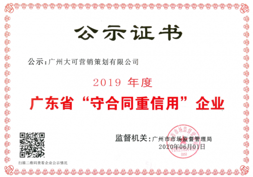人无信则不立,业无信则不兴。诚信是做人的基本准则,同样也是一个企业立足的根本,一个重责守信的企业在社会、品牌、消费者眼中无疑更受青睐。近日,广州市市场监督管理局公示了2019年度广东省“守合同重信用”企业名单,广州若羽臣科技股份有限公司(以下简称若羽臣)再次荣膺“守合同重信用”企业称号,这是若羽臣第三年获此殊荣。
