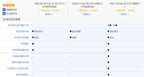 再看本田CR-V,相对于中规中矩的奇骏而言,其智能安全配置和智能驾辅配置方面的表现更让人失望,账面数据垫底,若是作为家庭用车,恐怕安全感方面有所欠缺。