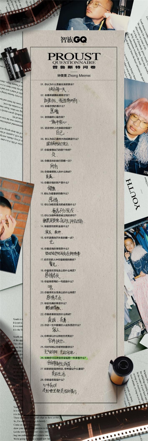 年轻人是怎样一群存在?钟美美的GQ普鲁斯特问卷刷屏了我的乐动网站-乐动(中国)一站式服务官方网站:“你认为程度最浅的痛苦是什么”,答曰“痛苦不分深浅”;“你的座右铭是什么”,答曰“心中有戏,走到哪里都是我的舞台”……这样的回答吸引了诸多先锋青年的认可,我们一边惊讶于他与年龄不相符的成熟,一边对他不被束缚的思维大加赞赏。毕竟,年轻人的标签就该是个性、独特、自信、打破束缚。