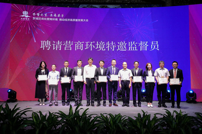 会上还为2019年度百强企业代表现场授牌,并为第二批优化营商环境特邀监督员颁发了聘书。农银理财、神工科技、光线传媒、分享一下科技等4位在东城投资兴业的企业家代表,分享了在东城发展的经验和体会,对未来在东城发展充满信心。