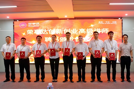 开班仪式上,首批特聘专家讲师、高级讲师代表上台领取了荣事达创新创业精英班特聘讲师聘书。这些选自荣事达电子电器集团各岗位的综合素质强、技能水平高的优秀人才,将会把自身领域的专项技能知识传递给大家,为企业培养更多技能型人才。